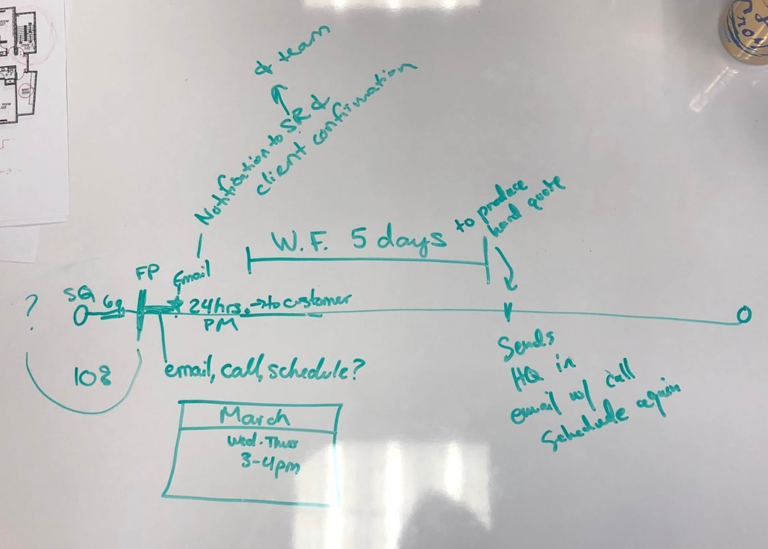 Once back in Nashville, we hit the ground running to sort through all of the inform, new-found knowledge, and insight we had collected. We polished our personas and taking them on user journeys. We mapped out all of the current processes for getting quotes from clients, then made a hypothesis of what our new website could do in its place.